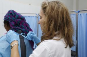 首先, 她在和睦家医疗志愿者的指导下完成了宫颈细胞自取样。 之后的一个多小时时间里,她在现场等候检查结果。很快,有人通知她,她的HPV 人乳头瘤病毒感染是阴性,她可以回家了。郭向丽带着如释重负的感觉说:“这样的检查特别好,我女儿33岁了,我要让她和我外孙女早点做这样的检查”。